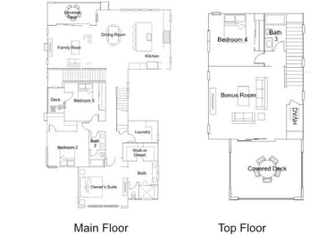 2 car garage at on the ground floor - living room and bedrooms on main - Loft and additional bedroom on top floor